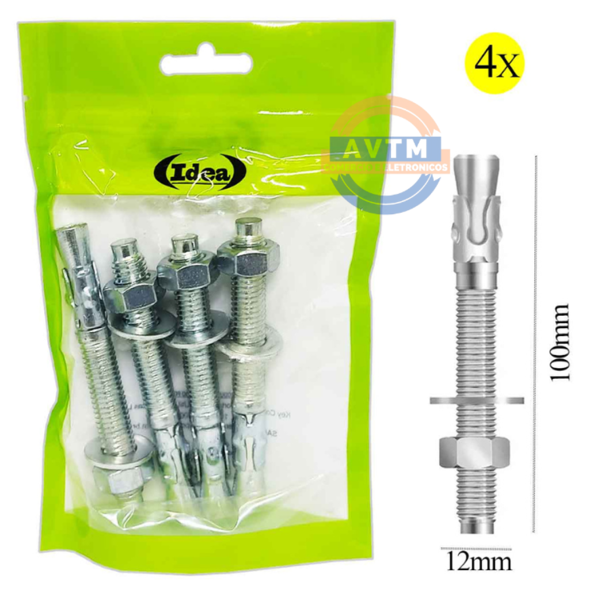 ID-0188P Chumbador Parabolt 12mm x 100mm – 4 Peças